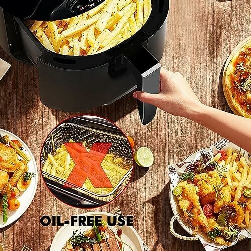 - Gesundes „Braten” ohne Öl Die Luftfritteuse wurde speziell für diejenigen entwickelt, die frittierte Lebensmittel lieben, aber die Fettaufnahme reduzieren möchten. Durch die Einstellung einer bestimmten Temperatur und der heißen Luft auf 360 Grad werden die Speisen gleichmäßig gekocht, das so zubereitete Essen ist knusprig, nicht trocken und spart viel Öl und Kalorien, während der Geschmack erhalten bleibt.