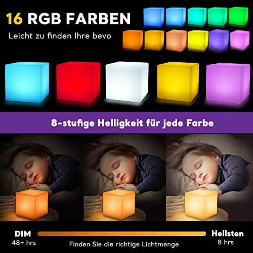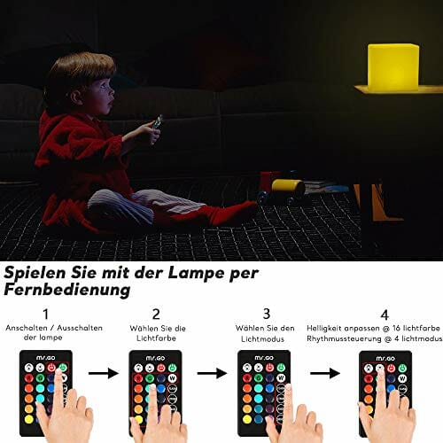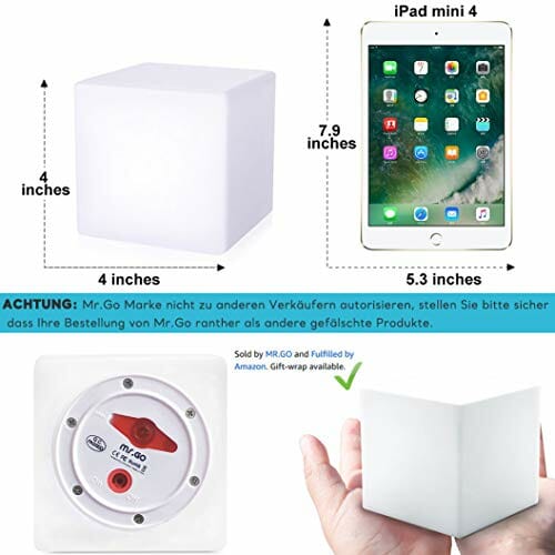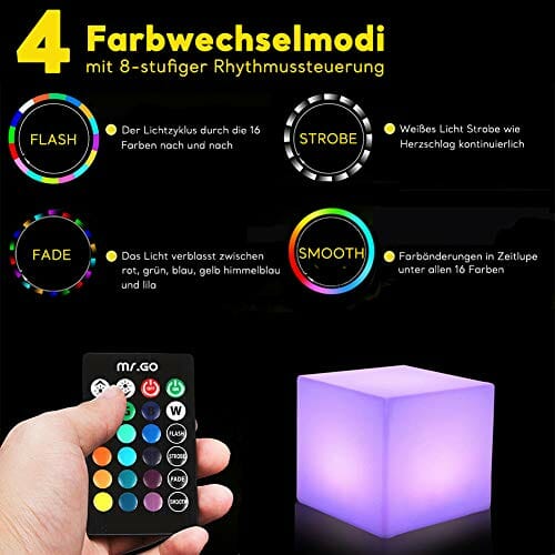 Mr.Go 10cm LED Cube Lampka Nocna z Pilot Zdalnego Sterowania, Ściemnialne Światło, 16 Kolorów Oświetlenia, RGB Zmiana Kolorów, Zasilanie Bateryjne