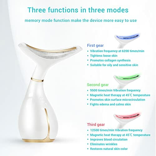 【45 ±5℃ ciepła: 【45 ±5℃ ciepła & 3 tryby masażu】 Ten masażer generuje ciepło, łącząc masaż o 3 intensywnościach, aby usunąć odpady z warstwy skóry i spowolnić starzenie się skóry.