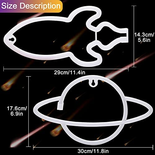 ✅ 【Unikalny design】: ✅ 【Unikalny design】 Neon MULEVIP wygląda jak słodka planeta, piękna i nowoczesna dekoracyjna lampa LED, to wspaniałe rozwiązanie do dekoracji pokoju Twojego malucha. Rozmiar: Planet light: długość 30 x szerokość 17,6 cm, rakieta light: długość 29 x szerokość 14,3 cm.