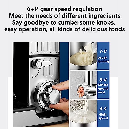 • * Wielofunkcyjny: wielofunkcyjny mikser do żywności 5 w 1 z haczykiem do ciasta, trzepaczką do płaską, maszynką do mięsa, kiełbasą, maszynką do makaronu i maszyną do ciast. Doskonałe urządzenie kuchenne z doskonałą obsługą spełni wszystkie Twoje wymagania i zapewni świeżą żywność Tobie, Twojemu kochankowi i członkom rodziny w 6-8 minut.