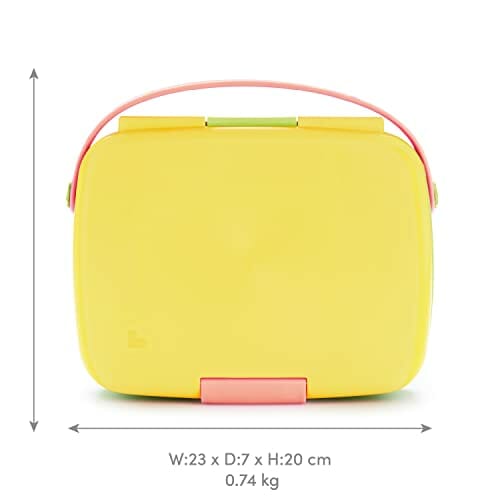 Munchkin Pudełko na lunch dla niemowląt i małych dzieci, z 5 przegródkami, pudełko na lunch/przekąski ze sztućcami ze stali nierdzewnej, idealne na przekąski w domu lub w podróży, bez BPA – żółty/różo