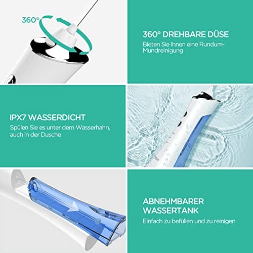 • ZBIORNIK WODY WODY WODY: Irygator wody jest wodoodporny IPX7, dzięki czemu można go bezpiecznie używać pod prysznicem lub wanną bez ryzyka wycieków elektrycznych. I jest wygodne, aby ludzie oddzielili zbiornik na wodę do czyszczenia.