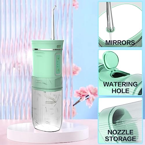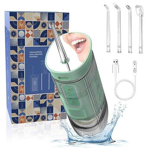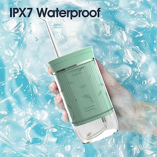 • 【Łatwa obsługa】Wbudowana bateria litowa 800 mAH, duży zbiornik na wodę o pojemności 300 ml, aby zapewnić Ci dużą ilość wody i nieprzerwaną nić dentystyczną. Zdejmowana pokrywa zbiornika na wodę jest łatwa do czyszczenia i łatwa do dodania wody. Specjalna wodoodporna obróbka zapobiegająca wyciekaniu wody, dzięki czemu irygator może być bezpiecznie używany w łazience i pod prysznicem.
