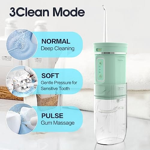 • Wiele trybów: Ten bezprzewodowy irygator doustny zapewnia 3 różne ustawienia ciśnienia (czyszczenie, puls, surfowanie), co jest bardzo odpowiednie dla osób z wrażliwymi zębami lub początkujących użytkowników. Może oczyścić zęby, dziąsła, język i usunąć do 99,99% resztek jedzenia i płytki nazębnej przyczepionej do zębów.
