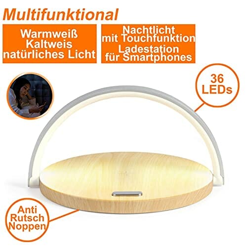 • ✅ Łatwa obsługa – ładowanie telefonu komórkowego jest bezproblemowe i odbywa się tylko poprzez odłożenie na stację. Lampa jest kompatybilna ze wszystkimi smartfonami i urządzeniami z certyfikatem QI. Kabel USB wchodzi w zakres dostawy.