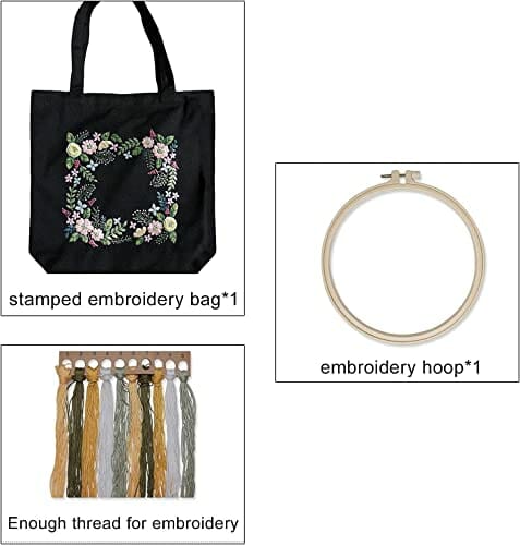 Namvo Zestaw do Haftowania Lnianych Toreb, dla Początkujących ze Wzorem i Instrukcją, Torba z Kwiatowym Wzorem, Ramka, Kolorowe