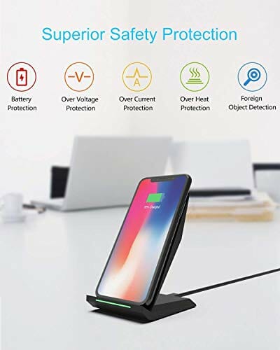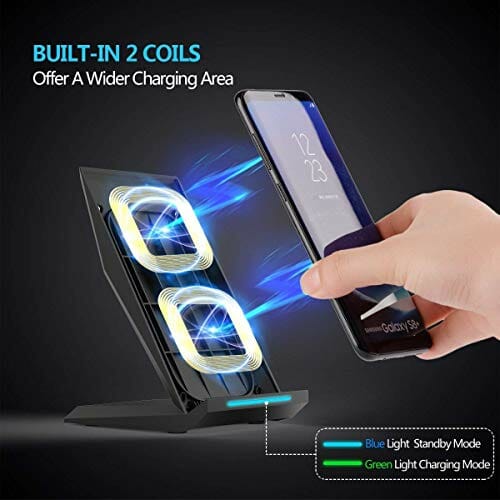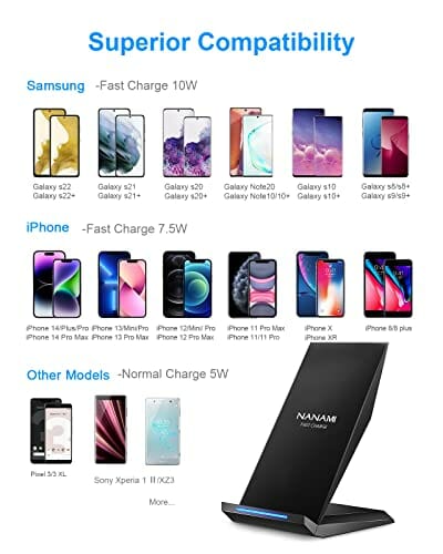 NANAMI szybka ładowarka bezprzewodowa Qi z 2 szybkoindukcyjnymi cewkami, do telefonów Samsung Galaxy S7 / S6 / S6 Edge Plus i innych kompatybilnych urządzeń Qi, czarna