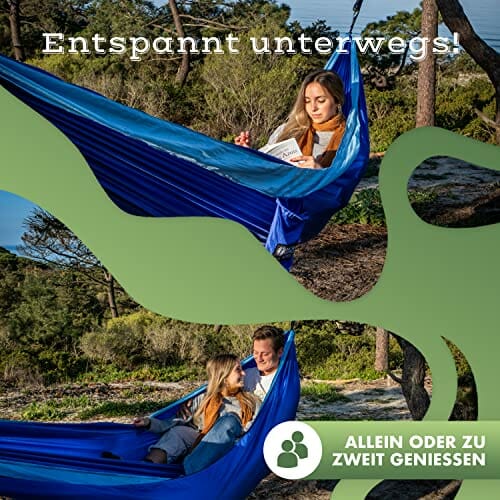 Napisz pierwszą opinię o „Naturbummler Hamak outdoorowy, 300 x 170 cm, neutralny pod względem emisji CO2, certyfikat TÜV, mata chroniąca przed drzewem, dwuwarstwowy jedwab spadochronowy do 2 osób, udźwig 300 kg, hamak kempingowy Hammock”