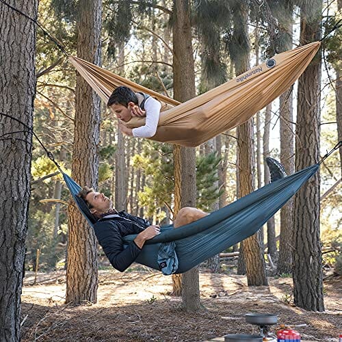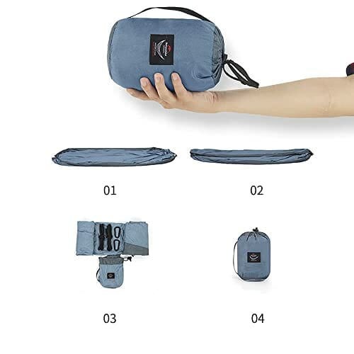 • Wystarczy kilka minut skonfigurować urządzenie i schować w praktycznym, kompaktowym zintegrowanym plecaku do użytku w podróży. Hamak z podwójnym spadochronem nadaje się bardzo dobrze na kemping, wędrówki i podróże z plecakiem.