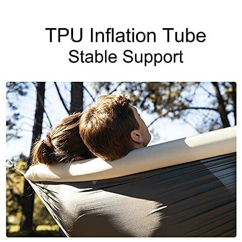 • Nadmuchiwany hamak: Z boku znajduje się nadmuchiwany wąż o szczególnej cechze, który dobrze podpiera kark, który jest wygodny i stabilny oraz zapobiega przewijaniu się.