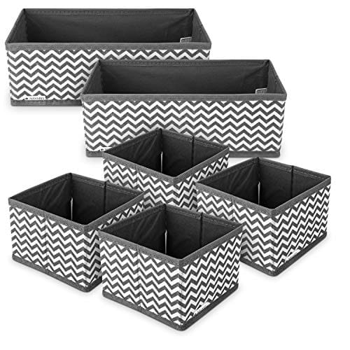 ✅ Nowoczesne wzornictwo: pudełka: Nowoczesne wzornictwo: pudełka do przechowywania z włókniny i tektury wyróżniają się stylowym zygzakowatym wzornictwem w kolorze szarym i białym i poprawiają wartość Twoich szafek i szuflad.