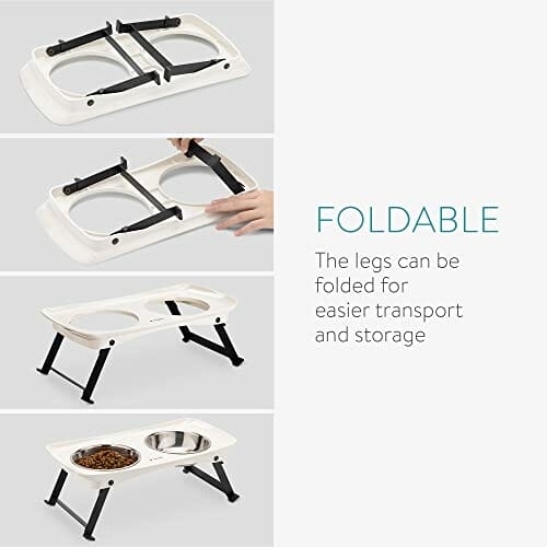 • Regulacja wysokości: Stelaż stojaka na jedzenie jest składane, a tym samym regulacja wysokości i może rosnąć również w przypadku większych zwierząt.