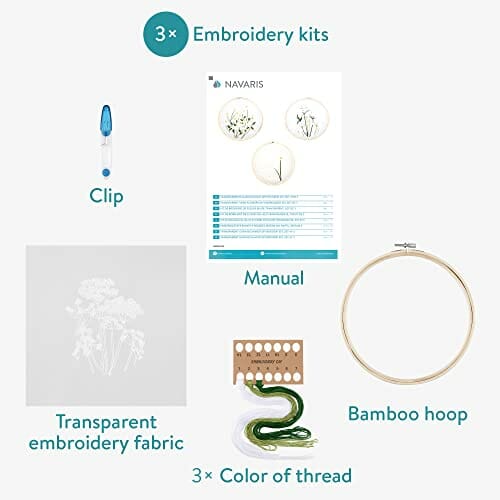 Zrób to sam:: Zrób to sam: zestaw do haftowania firmy Navaris w 3-paku kwiatów z przezroczystym materiałem to idealny początek Twojego pierwszego haftu. W tym celu otrzymasz wszystko, czego potrzebujesz na początek, łącznie z instrukcją obsługi w różnych językach.