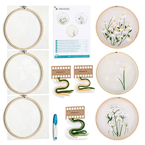 Navaris Przędza w kwiaty „zrób to sam” zestaw do haftowania – 3 x zest