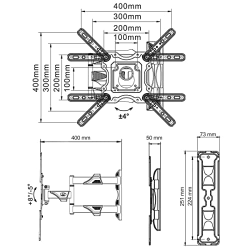 • Dzięki przesuwowi ściany od 50 mm do 400 mm, pionowemu pochyleniu + 5 ° / -8 ° i obrocie o 180 ° możesz bez wysiłku ustawić ekran w najlepszej pozycji! Ponadto zarządzanie kablami poprawia estetykę i bezpieczeństwo.