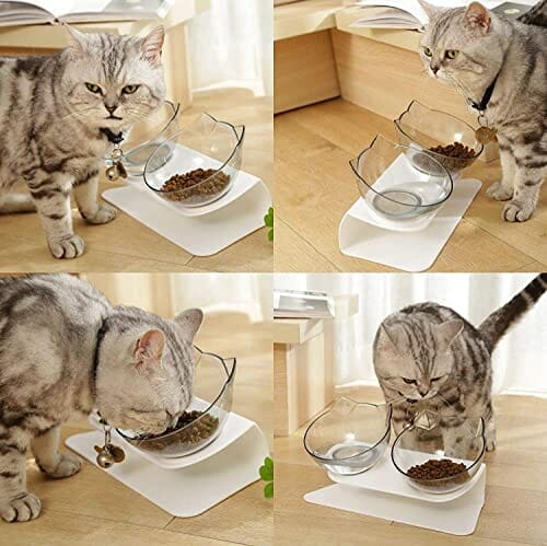 NC Miski na karmę dla kotów, regulowane miski dla kota o 15 stopni, podwójne miski na karmę dla kotów, karma dla kotów, przezroczysta miska na karmę dla kotów