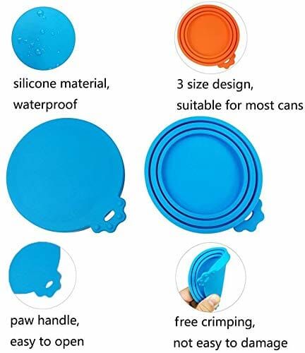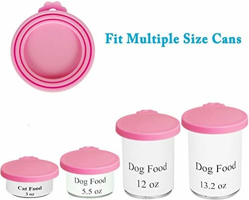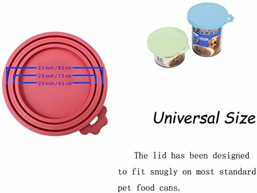 • Każda pokrywka na karmę dla zwierząt ma 3 różne rozmiary: 6,3 cm i 8,9 cm. Dzięki temu każda silikonowa pokrywka pasuje do prawie wszystkich pojemników na żywność w różnych rozmiarach, dla psów, kotów i innych zwierząt domowych.