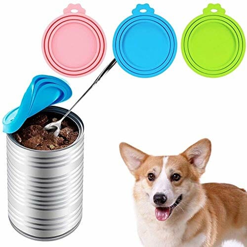 NC Zestaw 4 uniwersalnych pokrywek na karmę dla zwierząt, nie zawiera BPA, nadaje się do mycia w zmywarce, pokrywka dla psów i kotów, kolor losowy