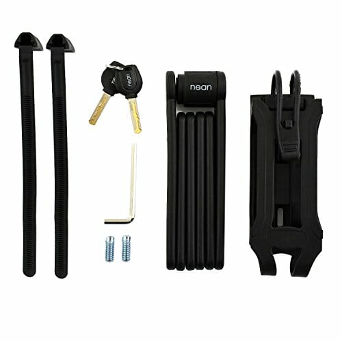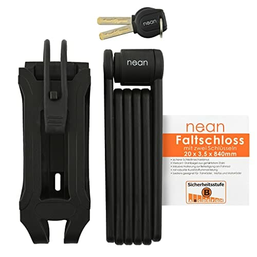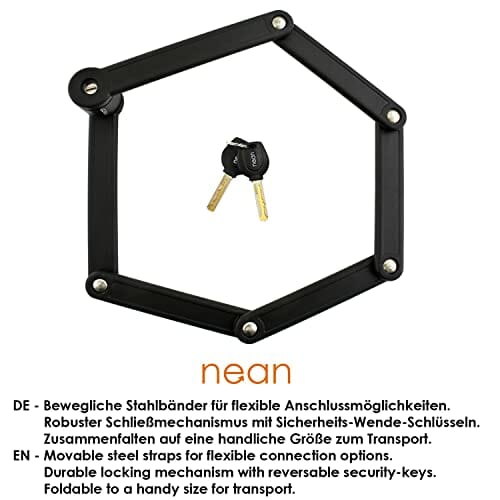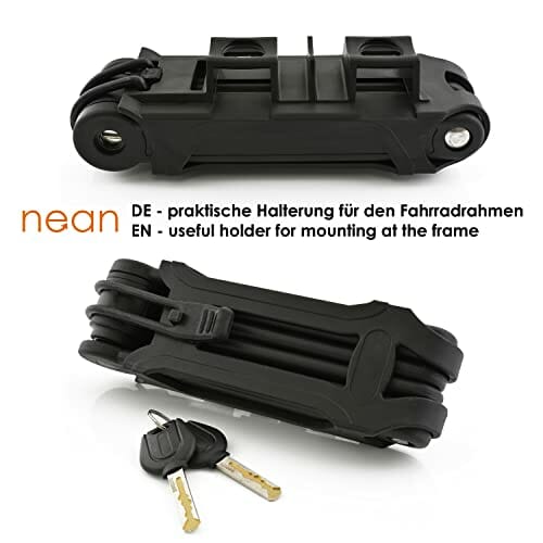 nean Składane zapięć, rowerowe z uchwytem, przegubowe, ze stali hartowanej, z kieszenią i 2 kluczami bezpieczeństwa, 20 x 3,5 x 840 mm, czarne