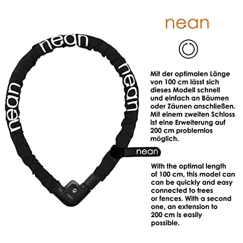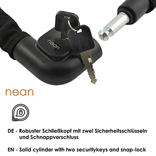 Nean Kwadratowa kłódka rowerowa, uchwyt, 2 klucze, bardzo solidna, 16 x 16 mm, 167 x 330 x 40 mm