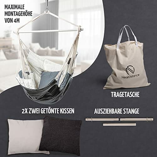 • Łatwy i szybki montaż – jest to u nas gwarantowane. W mgnieniu oka zawiesisz huśtawkę wiszącą i w mgnieniu oka ponownie schowasz ją w torbie transportowej. Wiszący fotel nadaje się przede wszystkim do małych mieszkań, balkonów i ogrodów.