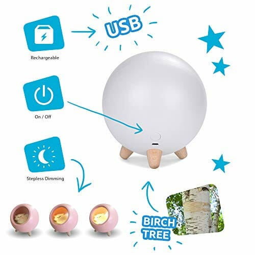 • Już czas spędzają czas na pewnym etapie w ich życiu: Ułatwiliśmy to dzięki naszym super uroczym lampom nocnym Dream Buddy dla dorosłych i dzieci w każdym wieku. Twoje dziecko poczuje się bezpiecznie i nigdy nie poczuje się już porzucone, gdy ściemniana lampka nocna dla kotka dostanie się do pokoju. Miękkie światło tworzy wyjątkową, przytulną i uspokajającą atmosferę.