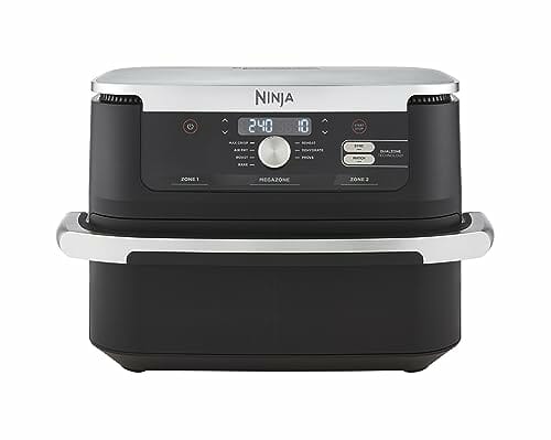 Ninja Foodi FlexDrawer Heißluftfritteuse, Dual Zone, verwandelt sich in MegaZone, 10,4 L, 7-in-1, Dual Zone, mit wenig bis gar kein Öl, antihaftbeschichtete, spülmaschinenfeste Teile, Schwarz AF500EU