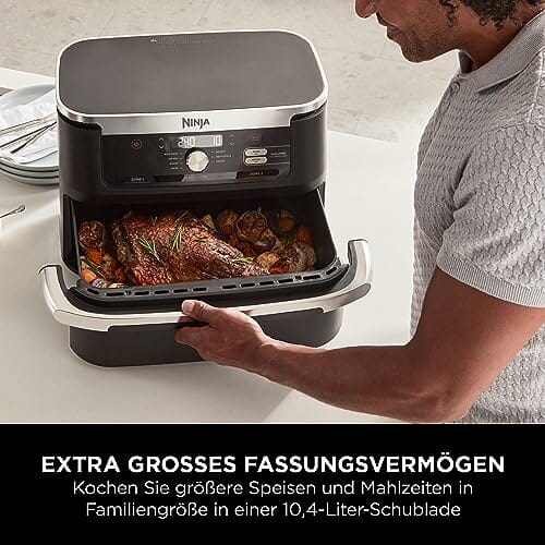 - FLEXDRAWER PASST SICH JEDER MAHLZEIT AN: 2 unabhängige Garzonen verwandeln sich in eine extragroße 10,4-Liter-MegaZone zum Garen größerer Speisen; portionen für bis zu 8+ Personen
