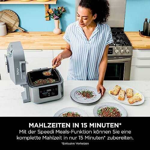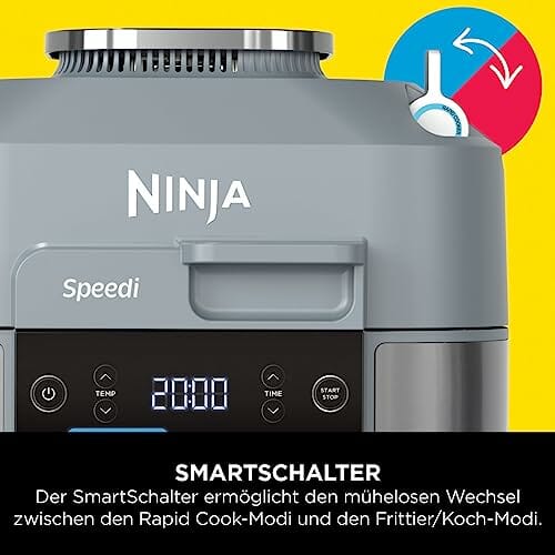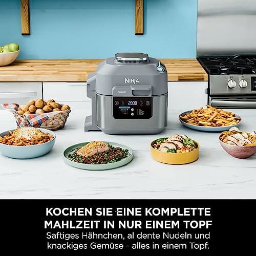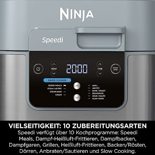 - BEINHALTET: Ninja Speedi 10-in-1-Schnellkocher (EU-Stecker), 5,7-Liter-Kochtopf, Koch- und Grillplatte, Küchenchef-Rezeptanleitung. Entnehmbare Teile sind spülmaschinenfest. Farbe: Meersalzgrau