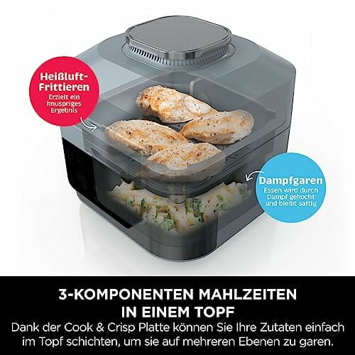 - SCHNELLES KOCHSYSTEM: Kombiniert Dampf und Luftgaren für fluffige Getreidespeisen oder bissfeste Pasta, zartes Gemüse und knusprige Hauptgerichte – alles in einem Arbeitsgang. Schichten Sie die Zutaten mit der Cook & Crisp-Platte.