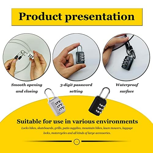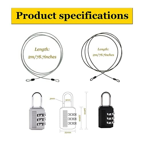 ✅ Z zamkiem szyfrowym:: Z zamkiem szyfrowym: nasz podwójnie zapętlony kabel bezpieczeństwa ze stali nierdzewnej jest dostarczany z 3-cyfrowym zamkiem szyfrowym ze stopu cynku. Większe bezpieczeństwo dla Twoich rzeczy. Może być również stosowany z innymi kłódkami, zamkami pałąkowymi lub szybami. (Zamek szyfrowy nie nadaje s