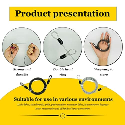 ✅ Wytrzymałość na przecięcie:: Wytrzymałość na przecięcie: kabel do pętli Kabel blokujący jest tkany z 49-żyłowego drutu stalowego o wysokiej wytrzymałości, który nie jest łatwy do złamania i zapewnia wysokie bezpieczeństwo. Powierzchnia jest chroniona powłoką PCW, która jest nierdzewna i wodoszczelna, zapobiega zarysowaniom i sk