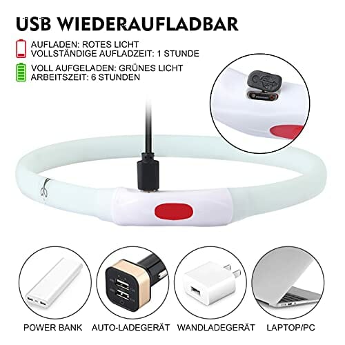 • Długa żywotność i możliwość ponownego ładowania przez USB: ta obroża jest wyposażona w baterię o pojemności 150 mA, ma czas pracy do 6 godzin i w pełni ładuje się w ciągu 1 godziny za pomocą kabla micro USB.