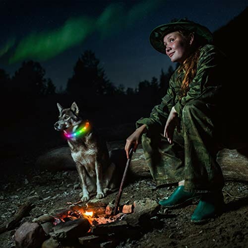 NOVKIN Obroża dla psa LED, ładowalna, zmieniająca kolor RGB, świecące obroże dla psów, wodoodporne światła dla psów sprawiają, że zwierzę jest widoczne i bezpieczne podczas nocnych spacerów, na zewnątrz, na kempingu, dla małych, średnich i dużych psów