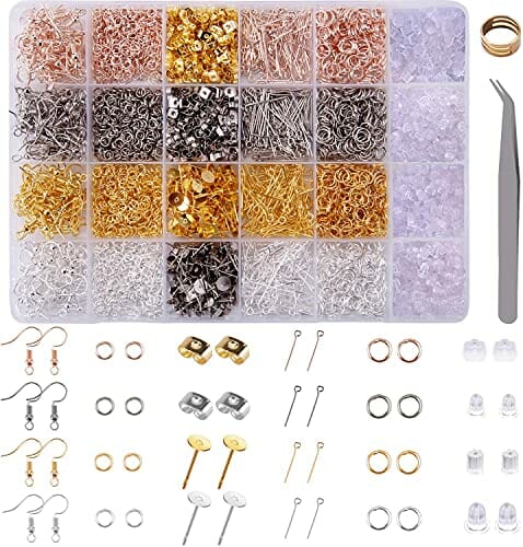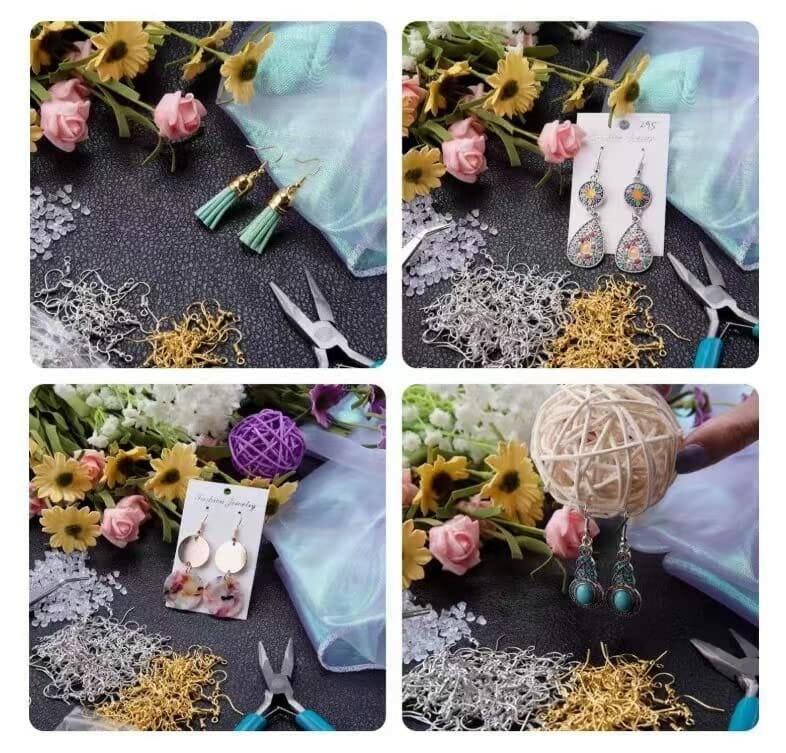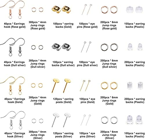 Wysokiej jakości akcesoria: Wysokiej jakości akcesoria do produkcji kolczyków: 160 haczyków na kolczyki (4 kolory), 2000 pierścieni do zgięcia (2 rozmiary, 4 kolory), 240 kolczyków (2 kolory), 400 kolczyków (4 kolory), 800 boków kolczyków w 6 różnych rodzajach, 1 pęseta i 1 otwieracz do kółek, idealne do tworzenia biżuterii i