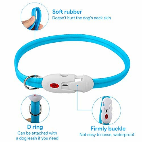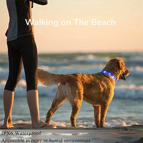 Oladwolf Świecąca obroża dla psa, ładowana, LED, wodoszczelna, z regulacją długości, USB, obroża bezpieczeństwa zwierząt domowych, dla psów i kotów – 3 tryby świecenia