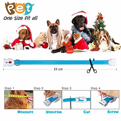 • W pełni regulowana konstrukcja: obroża LED dla psa ma długość całkowitą 55 cm i można ją łatwo przyciąć nożyczkami. Nie musisz się więc martwić, że Twój pies/kot jest za mały. Podczas przycinania pozostaw 3–5 cm zapasu, aby uniknąć nieprzyjemnego noszenia.