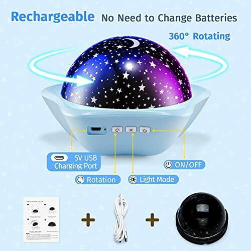 【Akumulator & Łatwy: 【Akumulator & Łatwy w użyciu】Projektor gwiazdy sufitu dzieci ma baterię 1200 mAh. Po ładowaniu dzieci mogą zabrać ze sobą projektor dziecięcy bez kabli, jest to lampa akumulatorowa, przenośny projektor dziecięcy do dekoracji pokoju dziecięcego! Nie jest konieczne, aby kupić baterie do nocnego światł