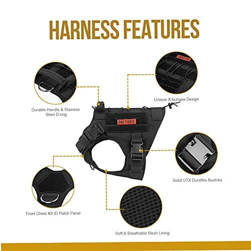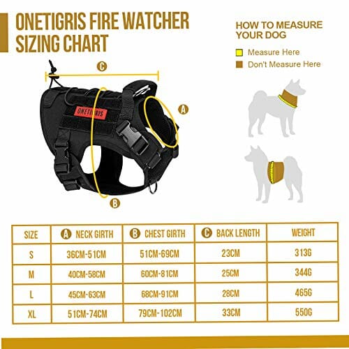 OneTigris uprząż dla psa FIRE WATCHE, taktyczna kamizelka dla psów MOLLE, do szkolenia psa, uprząż nylonowa, 1000D (XL, czarna)