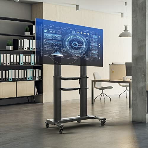 Uniwersalny stojak pod: Uniwersalny stojak pod telewizor | Stojak pod telewizor jest niezbędny do prezentacji w biurze, na uniwersytecie lub podczas wideokonferencji. Ponadto ten wózek pod telewizor z kółkami umożliwia ustawienie obszaru multimedialnego w domu. Ta uniwersalna podstawka pod telewizor to doskonały dodatek do