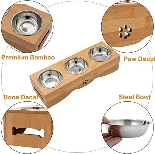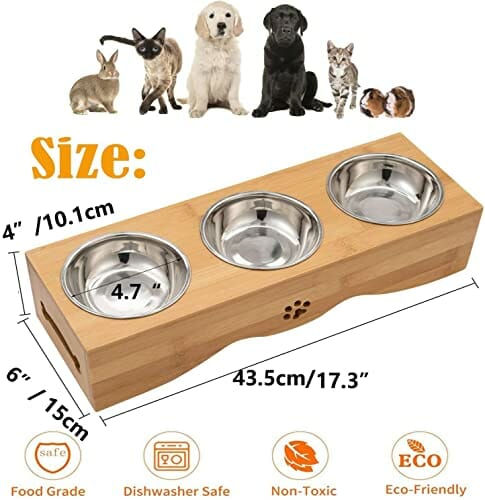 • ✅ 【 & 】 : Ta podwyższona miska na karmę jest wykonana z bambusa o wysokiej odporności na działanie wody. Domek dla psów jest podniesiony antypoślizgowymi nóżkami, co sprawia, że są stabilne i nie ślizgają się łatwo. Zapobiegają ślizganiu się miski na zwierzęta domowe i chronią podłogę