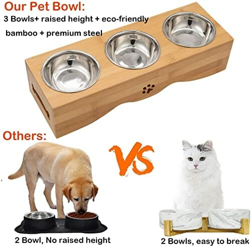 • ✅ 【 】 : w przeciwieństwie do innych produktów konkurencyjnych ten zestaw misków dla kotów jest dostarczany z 3 miseczkami ze stali nierdzewnej na dozownik wody i miskę dla kotów, które nie łamią się podczas wysyłki lub upadku na ziemię. Oznacza to, że możesz cieszyć się tą podwyższoną miską na pokarm przez wiele lat