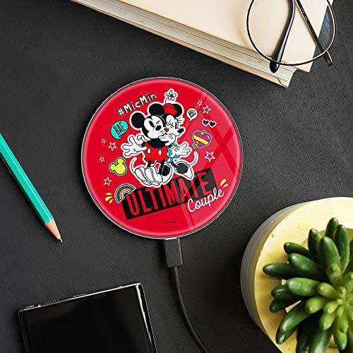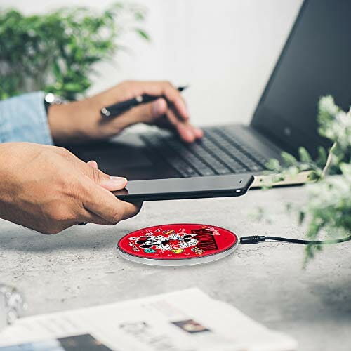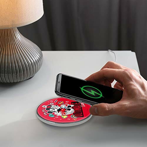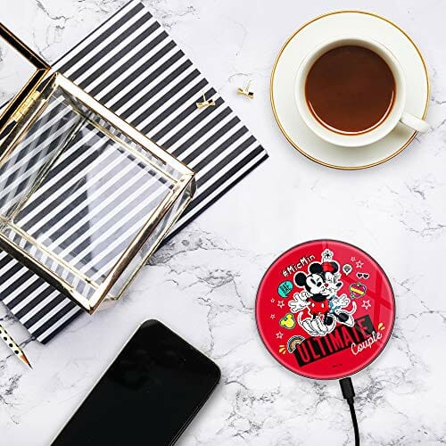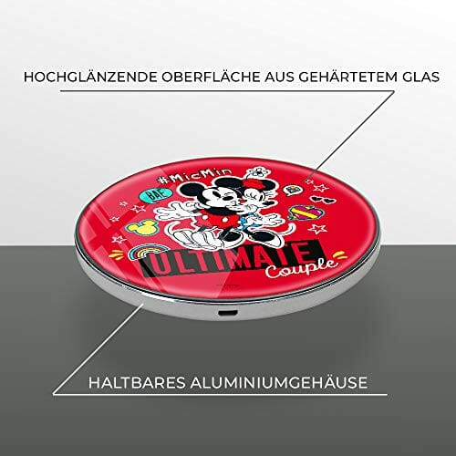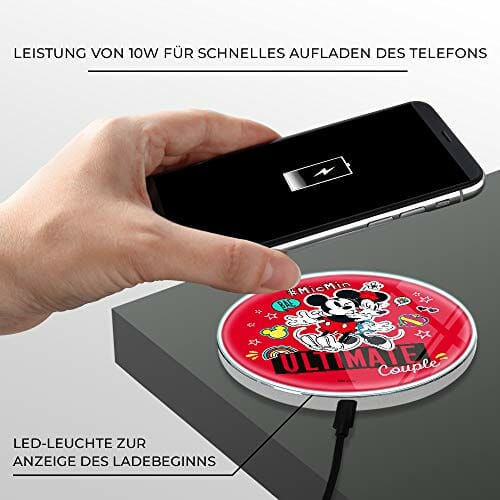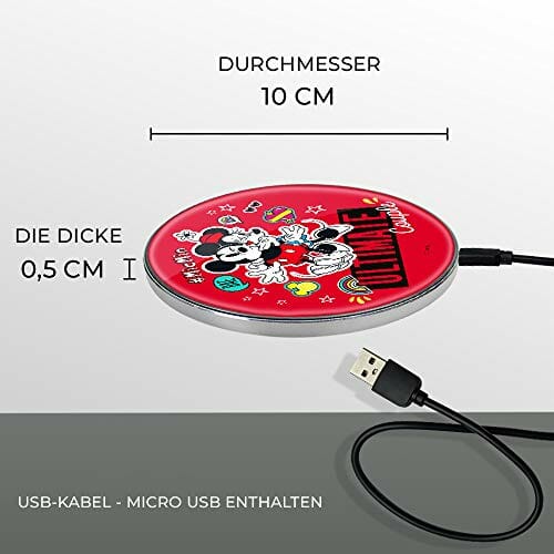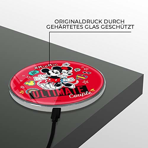 ERT GROUP Oryginalna i oficjalnie licencjonowana przez Disney ładowarka indukcyjna, wzór Minnie i Mickey 001, szklana bezprzewodowa stacja ładująca, kabel Micro USB 1 metr 10W