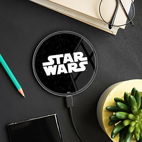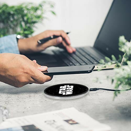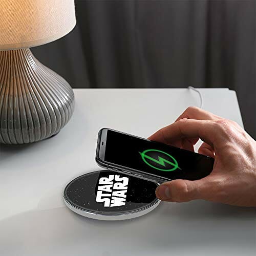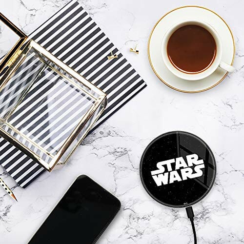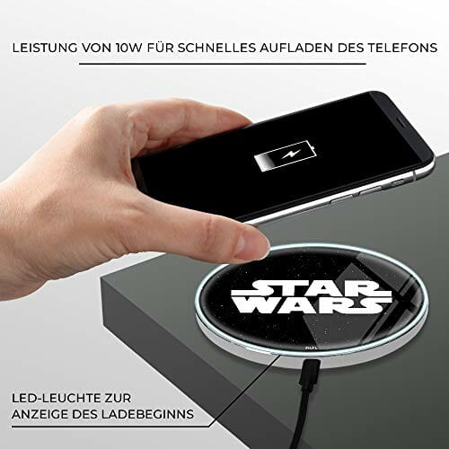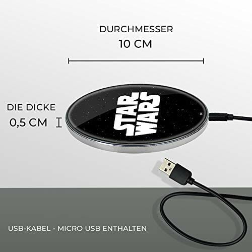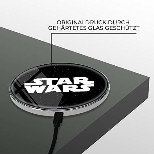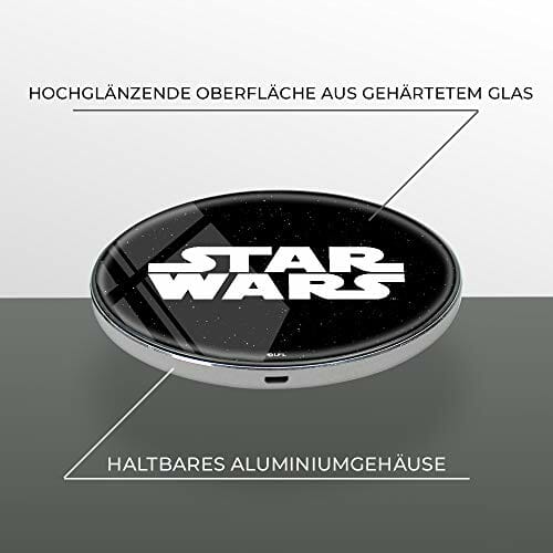 ERT GROUP Oryginalna i oficjalnie licencjonowana przez Star Wars ładowarka indukcyjna, wzór Star Wars 005, szklana bezprzewodowa stacja ładująca, kabel Micro USB 1 metr 10W