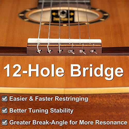 • 34 korpus skala 590 mm – głębokość korpusu 95 mm – szerokość nakrętki 45 mm – 18 progów – 2-drożny pręt kratownicy – chromowane maszyny do strojenia z perłowymi przyciskami – wzmocnienie wentylatora – mostek 12-otworowy: zapewnia większy kąt przerwania dla czystszego, wyraźniejszego dźwięku i szybszej wymiany sznurka