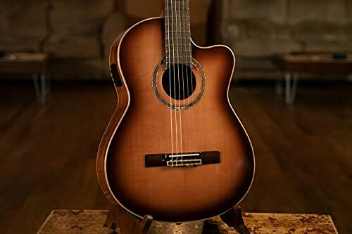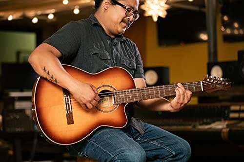 Ortega Guitars Classical Guitar Electro-Acoustic – 4/4, Wąski Gryf – Seria Performer – W Zestawie Pokrowiec – Lity Świerk Sitka/Mahoń, Wykończenie Burst, Połysk (RCE238SN-FT)