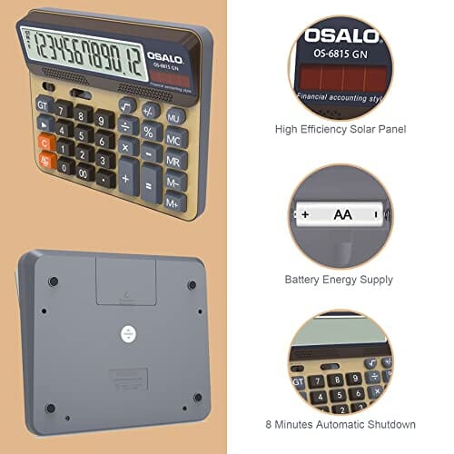 Nie trać więcej czasu na szukanie idealnego kalkulatora. OSALO Kalkulator biurkowy, duży wyświetlacz, duże przyciski, 12-cyfrowy kalkulator (OS-6815GN) to doskonały wybór dla wszystkich, którzy cenią sobie wygodę, precyzję i styl. Niezależnie od tego, czy jesteś profesjonalistą w biurze, czy osobą pracującą w domu, ten kalkulator spełni Twoje oczekiwania i ułatwi Ci codzienną pracę.