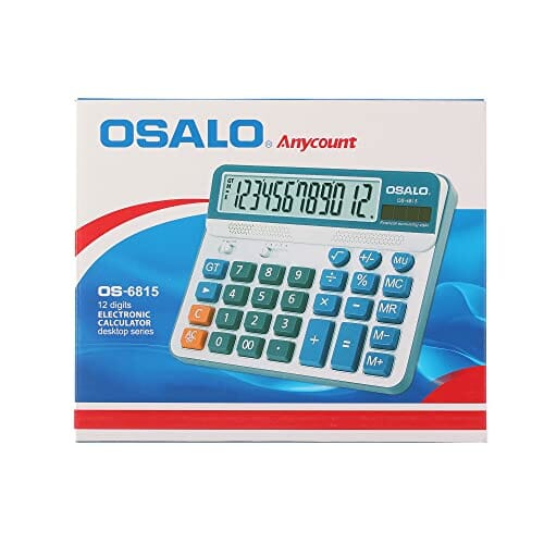 OSALO Kalkulator biurkowy, duży wyświetlacz, duże przyciski, 12-cyfrowy kalkulator (OS-6815GN) to niezastąpione narzędzie dla każdego biura, firmy lub domowego biurka. Ten nowoczesny kalkulator został zaprojektowany z myślą o wygodzie i efektywności, oferując użytkownikom nie tylko duży wyświetlacz, ale także wygodne, łatwe do naciśnięcia przyciski.