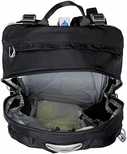 • Zintegrowana osłona przeciwdeszczowa chroni sprzęt przed niepogodą. Przechowuje się w zewnętrznej kieszeni u dołu plecaka.